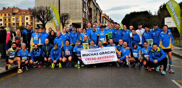 Somos muchos los que corremos: 500 la media maratón y 450 las 7 millas. Vemos a mucha gente conocida. A las 10:30 quedamos con los compañeros para hacernos la foto de familia. Somos 45 apuntados y muchas de las liebres son de nuestro club. Muy grande el Club Correr Asturias.
