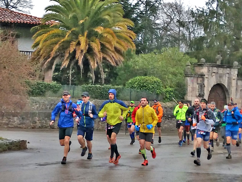 Como la carrera está dentro del campeonato de Cantabria de carreras por montaña, hay que pasar por un control de firmas antes de salir. Esto hace que la salida se retrase unos minutos. Mientras esperamos en la cola sigue lloviendo intensamente.